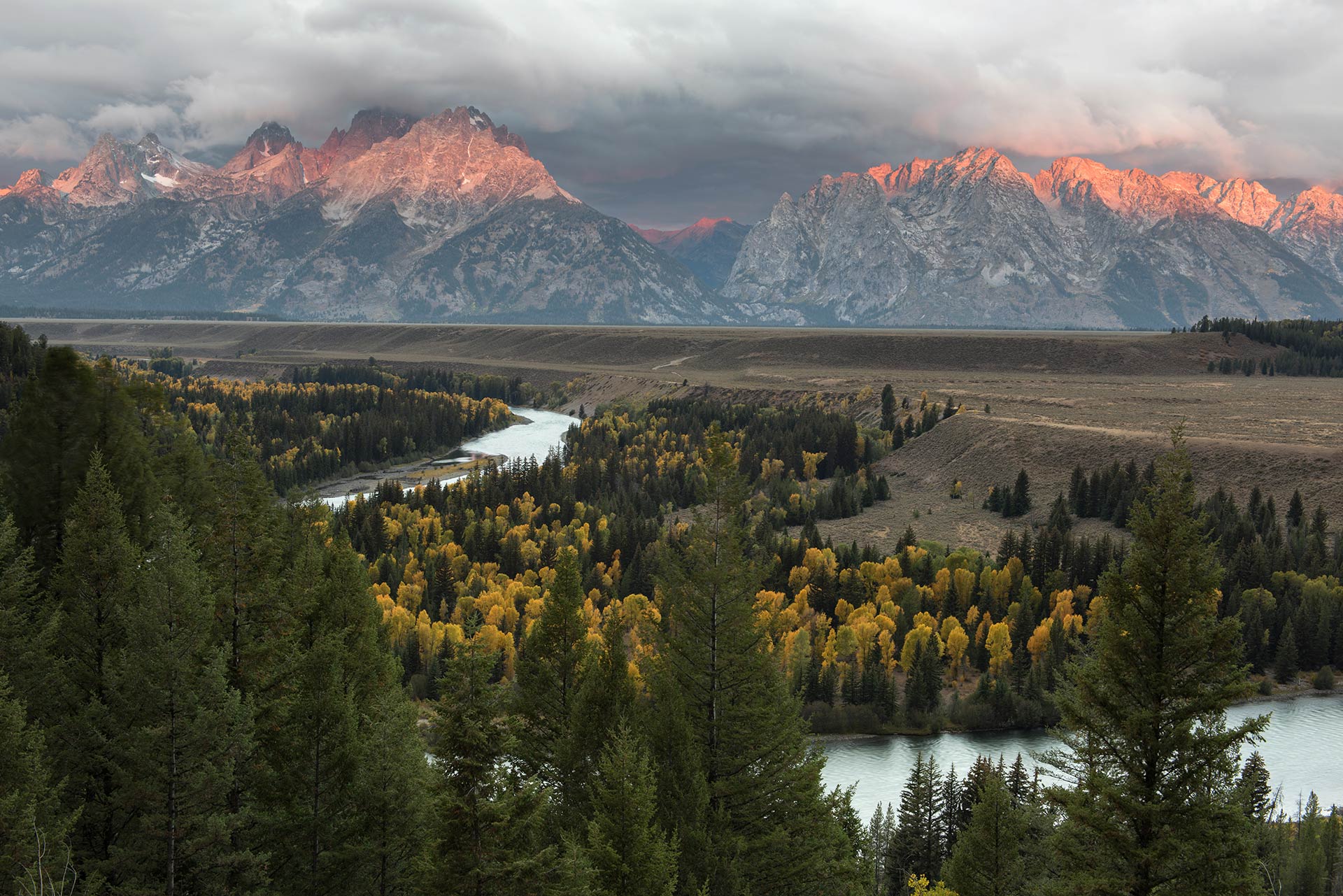 I became fixated on shooting sunrise at the Snake River Overlook with the river bottom cottonwoods in peak Fall colors kaleidoscopically set against the evergreens, but this photo is literally four years in the making.